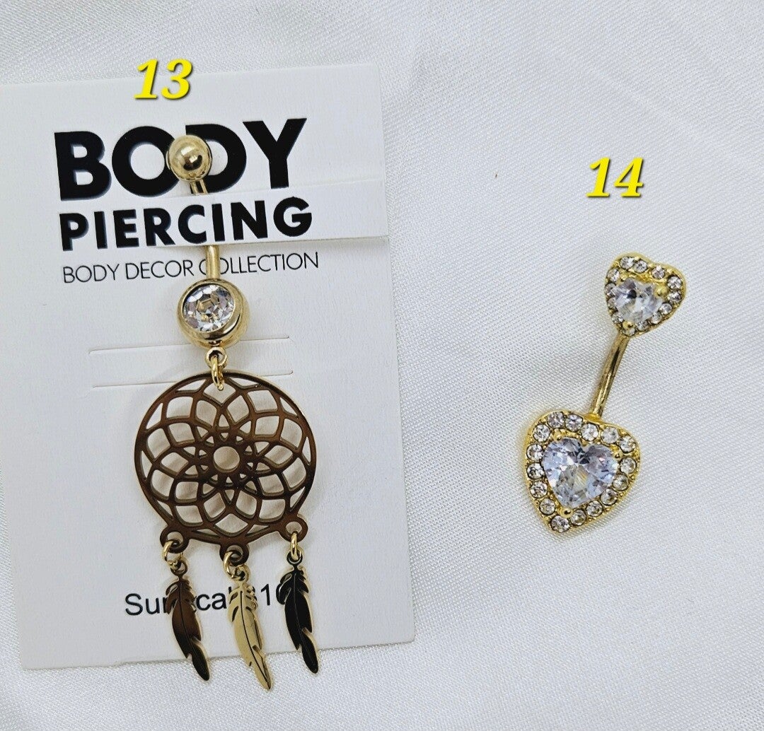 🌟 Retrouvez ci-dessous une sélection de piercings pour nombril avec des pendentifs de couleur doré ou argenté.