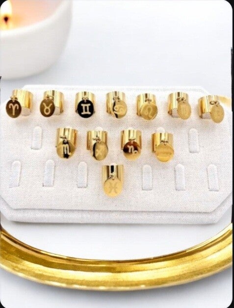 🌺 N'hésitez pas à porter des Bijoux personnalisé, Les Pépites d'Angel vous propose cette superbe bague large de couleur doré avec une breloque signe du zodiaque😍 à prix tout doux.