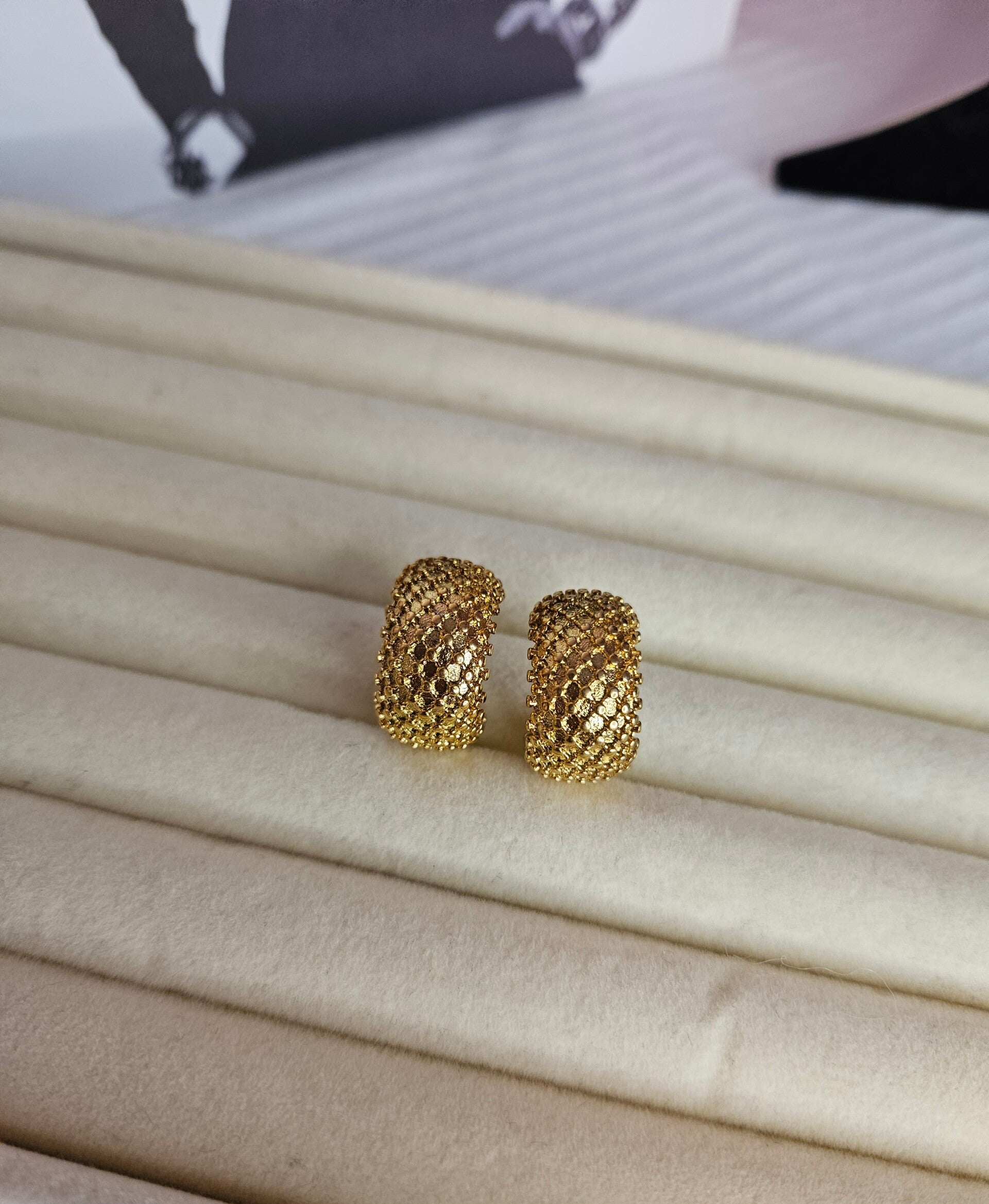 ✨️ Superbe paire de boucle d'oreille "Marta" un peu large, de couleur doré. Elle sont très légère est agréable à porter.