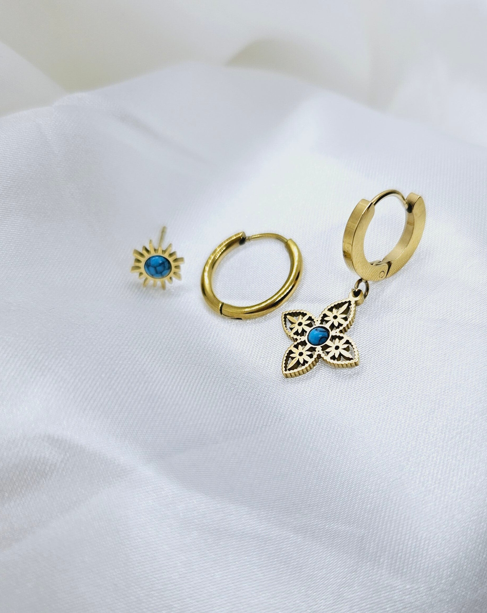 🌺 Un ensemble de 3 paires de boucle d'oreille , de couleur doré et turquoise.