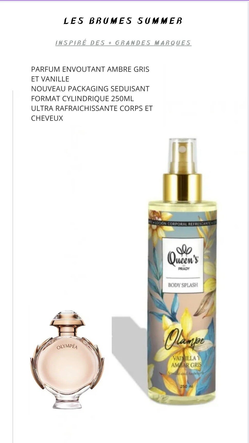 🌺 Lotion, brume, pour le corps et les cheveux, rafraîchissante au parfum inspiré " Olympea, Paco Rabanne".