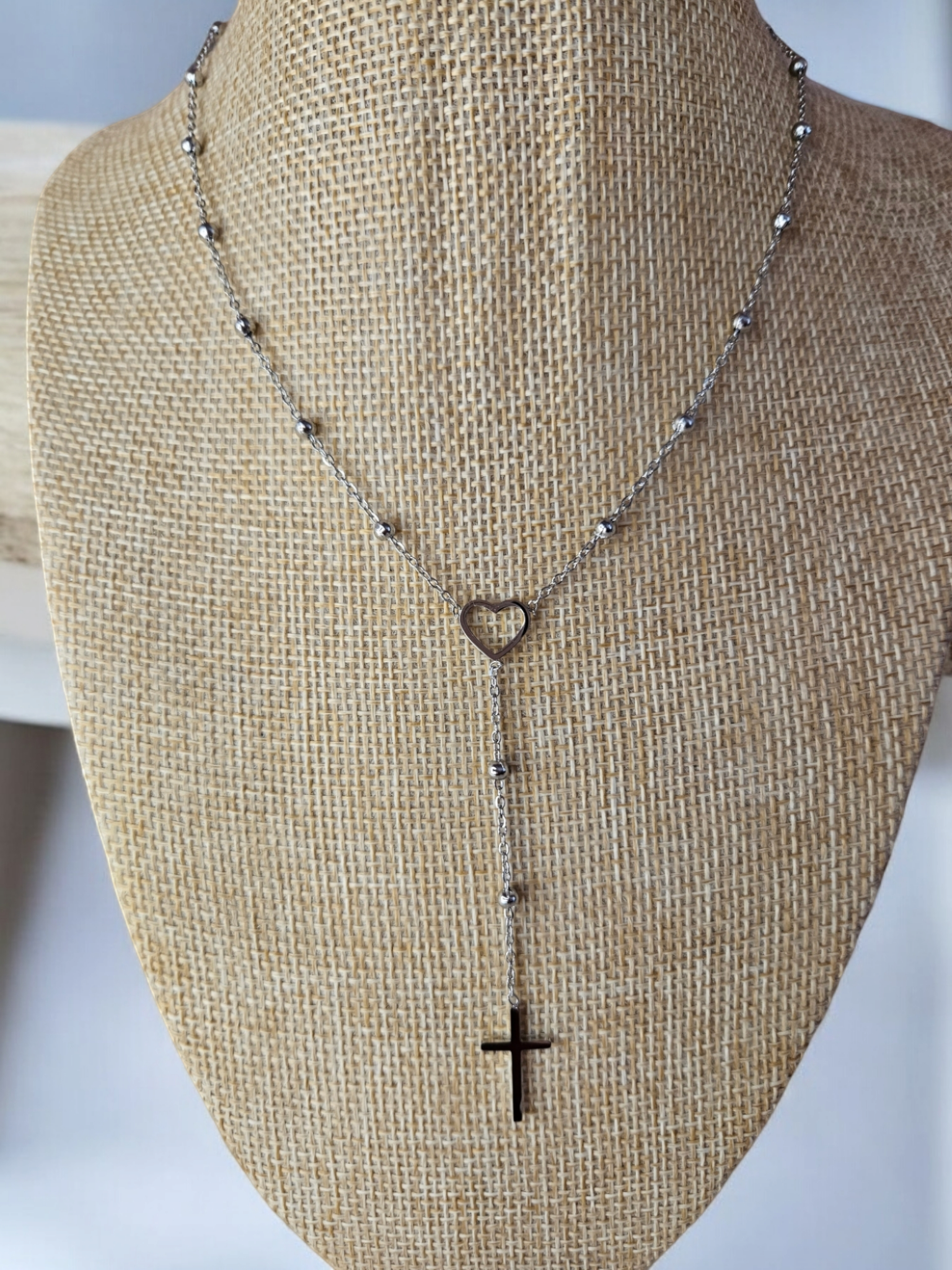 ✨️ Magnifique collier longt en Y avec détails petites boules sur la chaîne est un petit cœur accompagné d'une élégante croix..