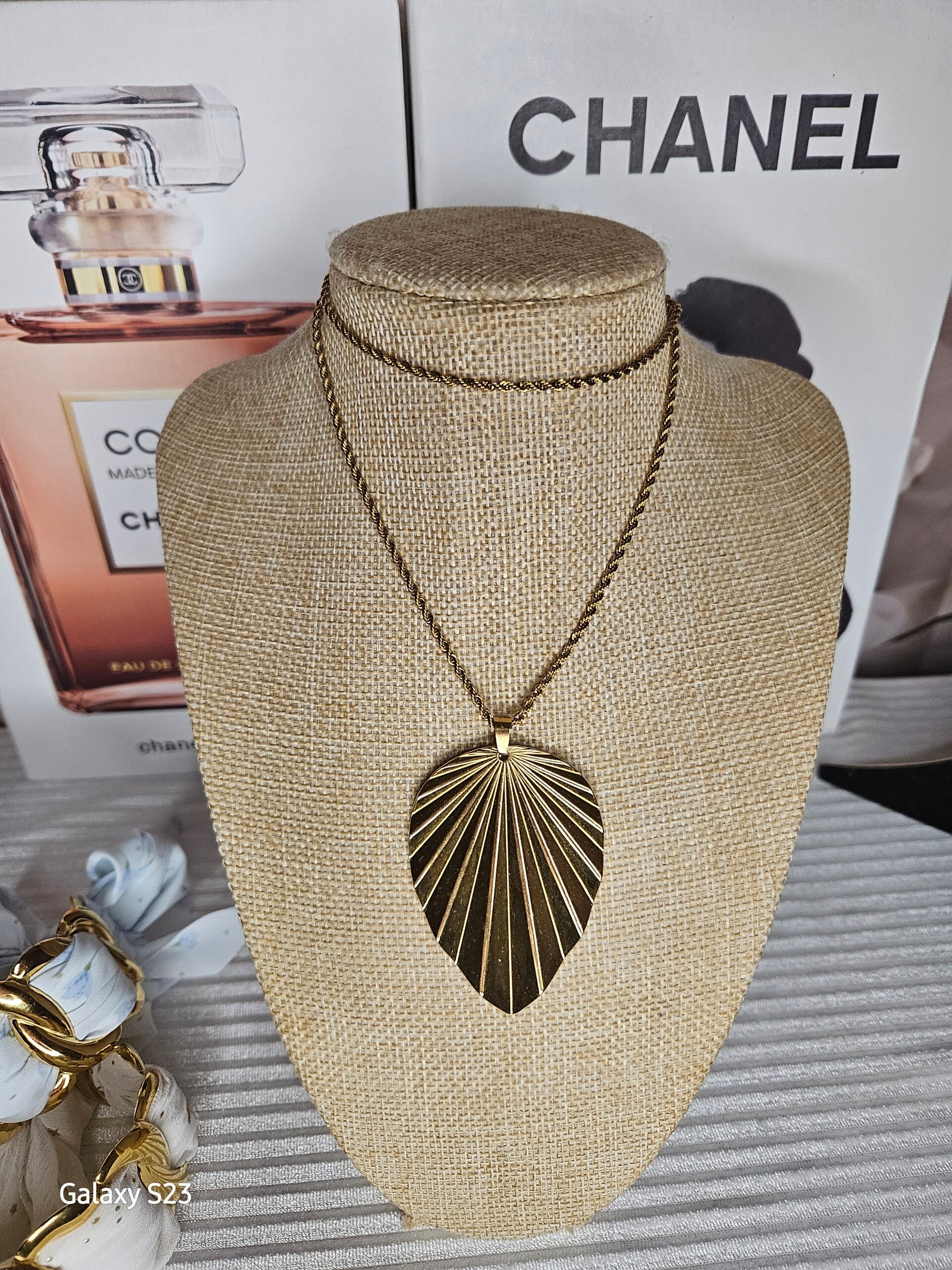 🌺 Magnifique collier " longt de 28 cm de couleur doré avec chaine torsadé, accompagné d'un joli pendentif feuille, petit ce porter en longt collier ou en double.