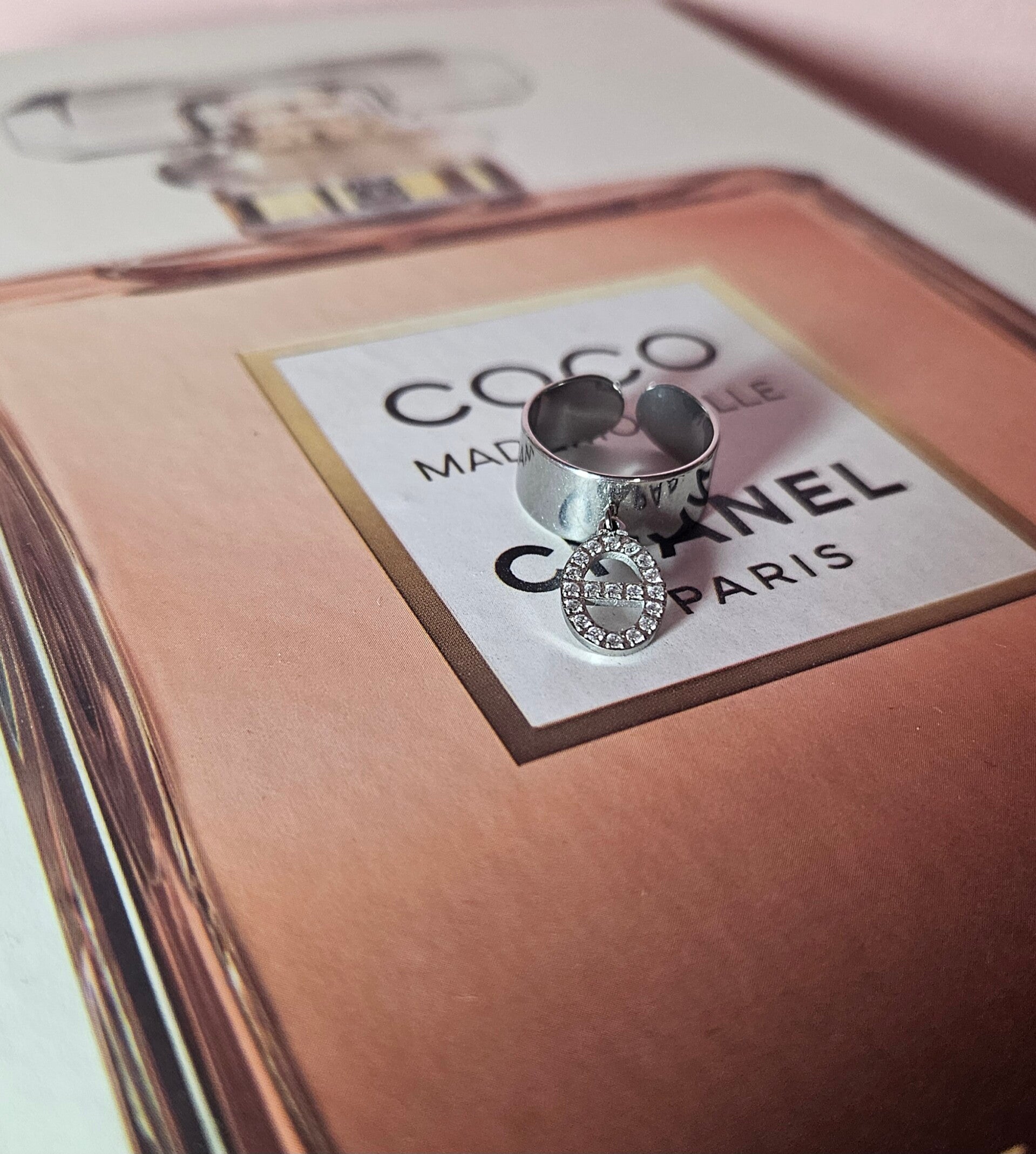 ✨️ Une bague légèrement large en acier inoxydable argenté, ornée d’une breloque maille marine sertie de strass, pour un style subtil, élégant et lumineux.✨️
