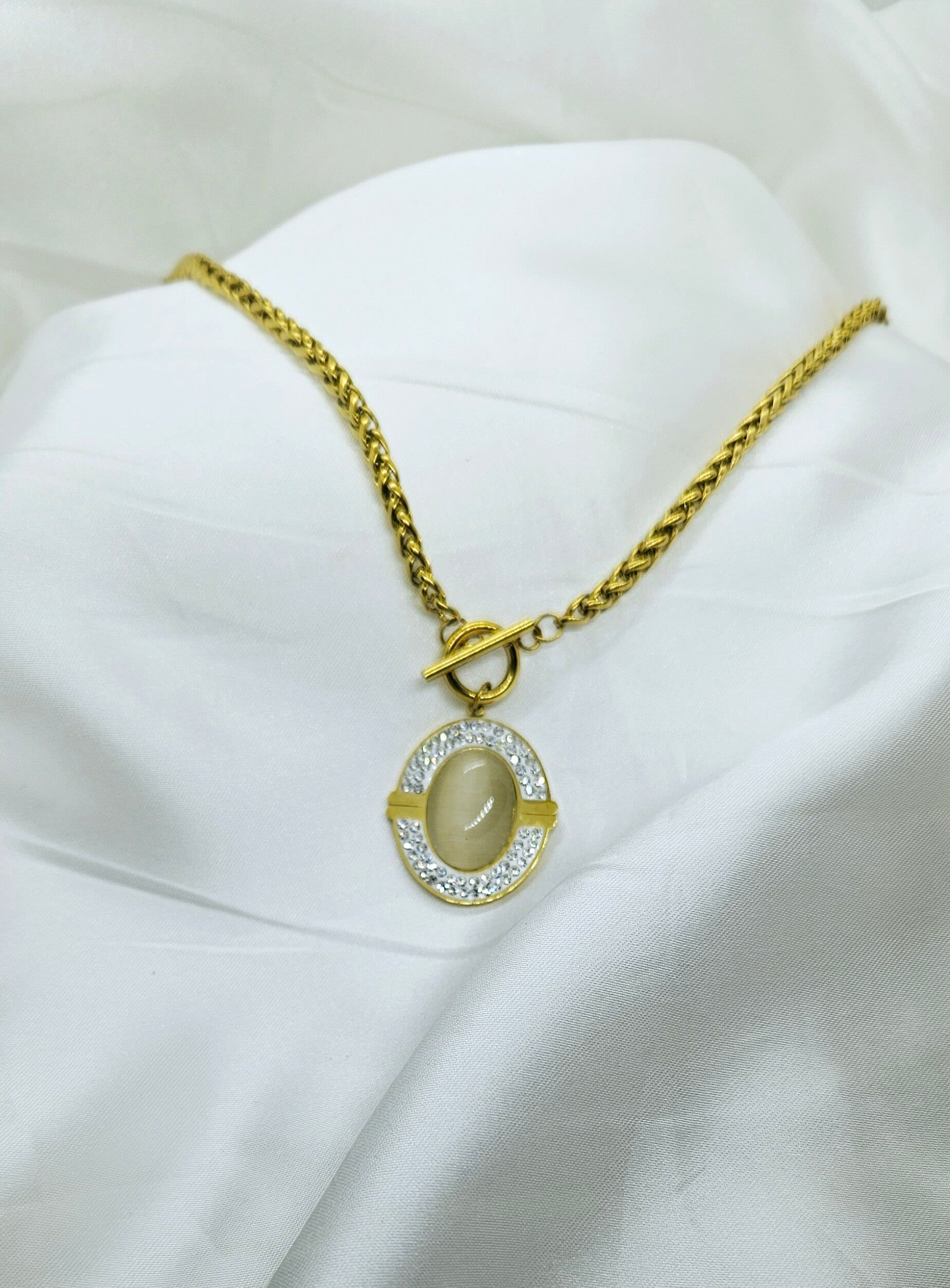 🌺 Magnifique collier " Emilie" de couleur doré avec un gros pendentif pierre de couleur noir entouré de strass...et disponible également avec une pierre doré.