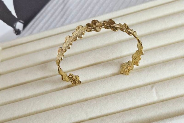 🌸 Optez pour cet élégant bracelet jonc, ultra flexible, s'adapte à tout les poignets, de couleur doré avec fleur....