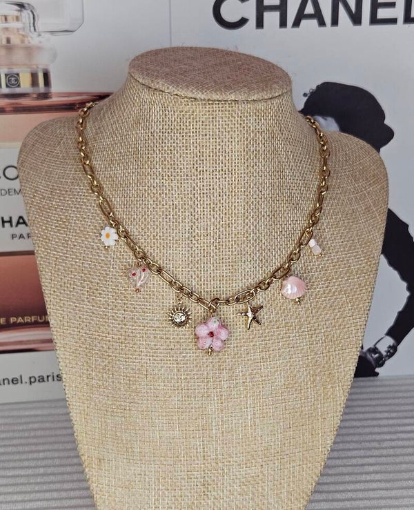 ✨️ Collier Fantaisie Doré – Charms d’Été en Verre & Émail :