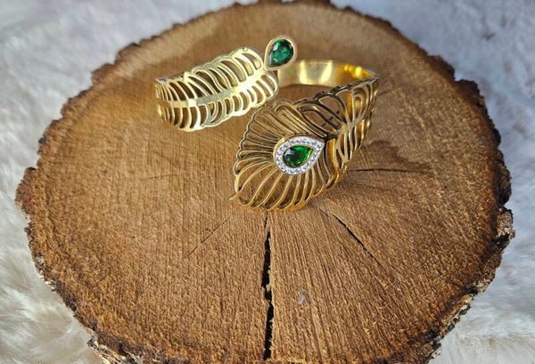 ✨️Élégant et délicat, ce bracelet jonc ouvert en acier inoxydable doré présente un design légèrement croisé avec deux formes de feuilles raffinées. Chaque modèle est sublimé par un joli zircon, disponible en blanc ou vert, pour apporter une touche de lumière et de couleur. Ajustable et confortable, il s’adapte à toutes les poignets et devient un bijou idéal pour sublimer vos tenues, au quotidien ou en soirée.✨️