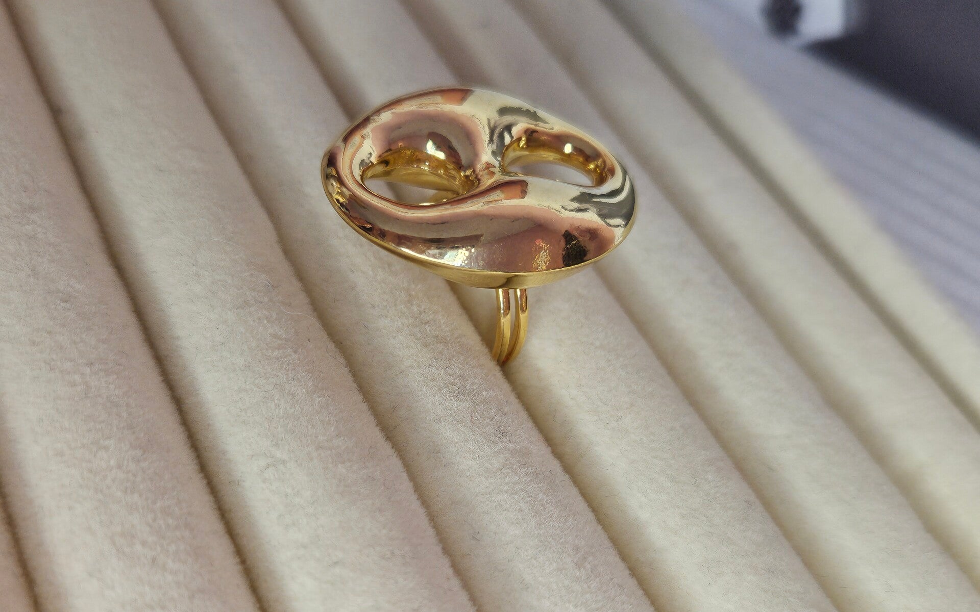✨️ Une grosse bague dorée au design maximaliste, inspirée des graines de café, qui attire tous les regards.