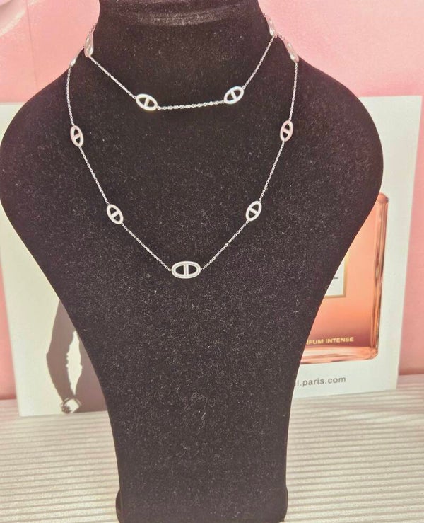 ✨️ En Nouveautés, le maxi sautoir argenté " Julia " très très longt environ 90 cm de longueur, orné de plusieurs maille marine sur la chaîne....