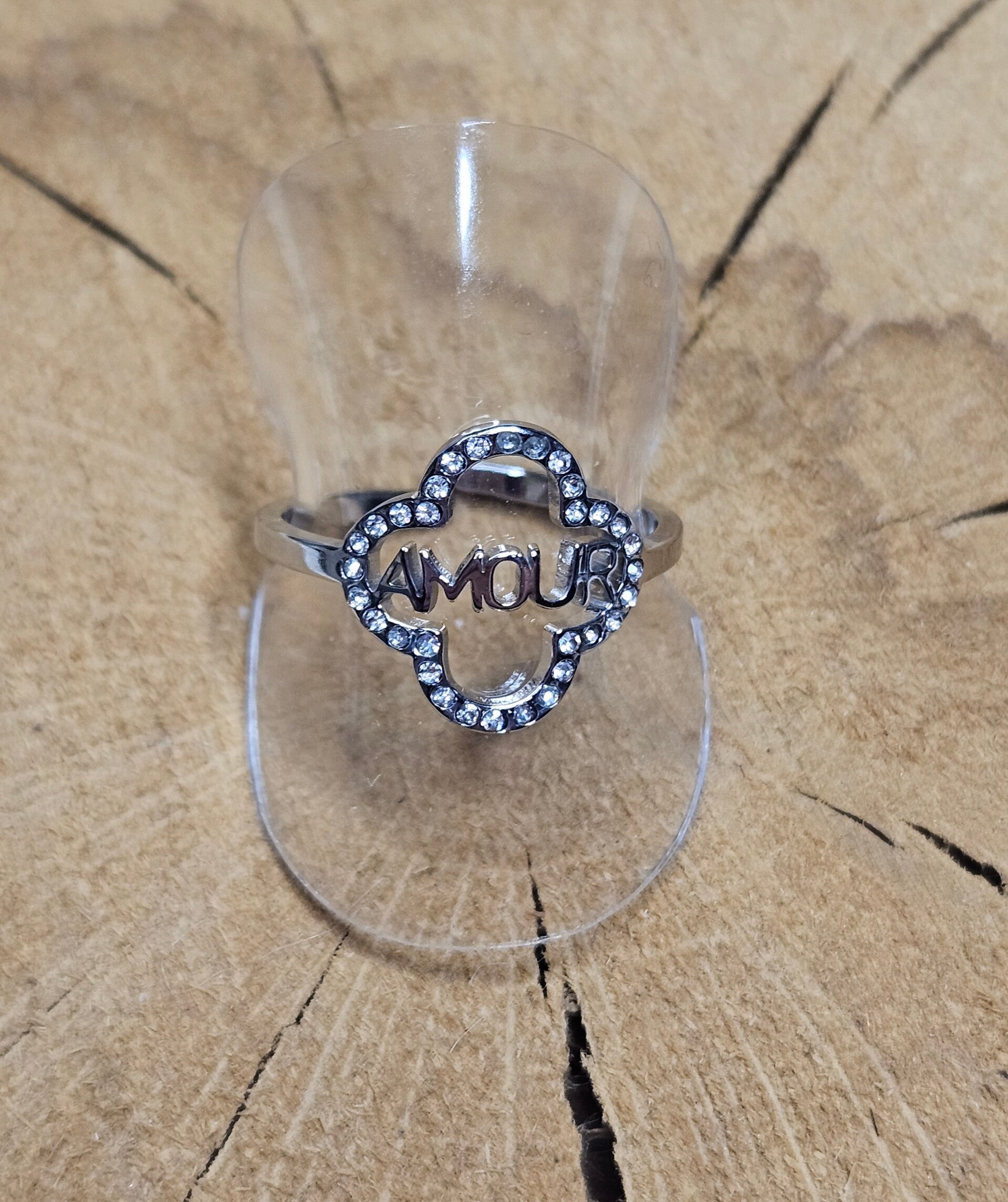 🍀 Bague Trèfle Strass "AMOUR" – Nouvelle Collection