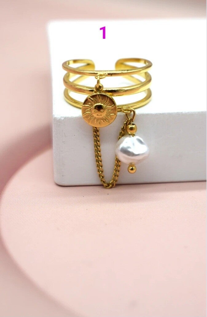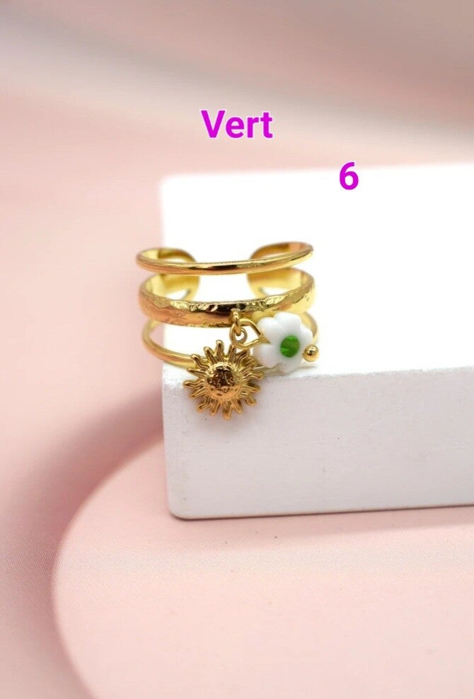 ✨️ Superbe bague ajustable couleur dorée, ornée de petites breloques divers aux coloris variés ✨