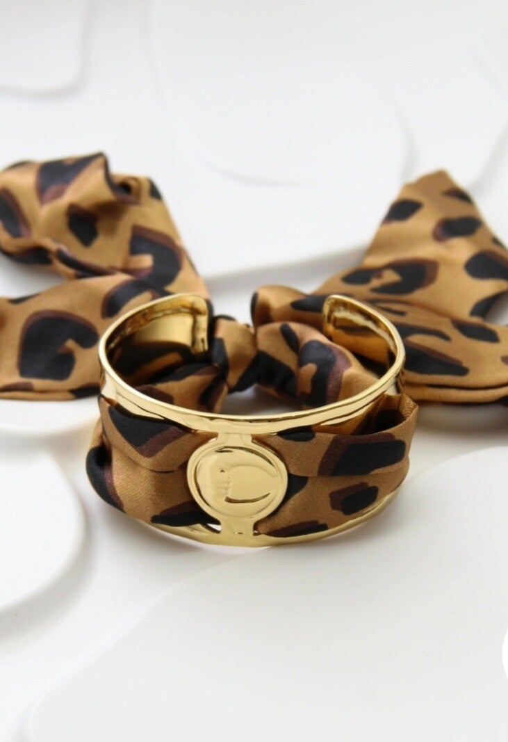 Bracelet Jonc Doré avec Ruban Imprimé Léopard Bellissima