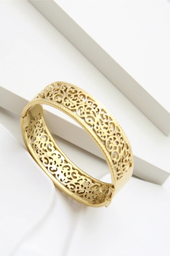 Bracelet Jonc Dentelle en Acier Inoxydable Doré – Raffinement et Légèreté