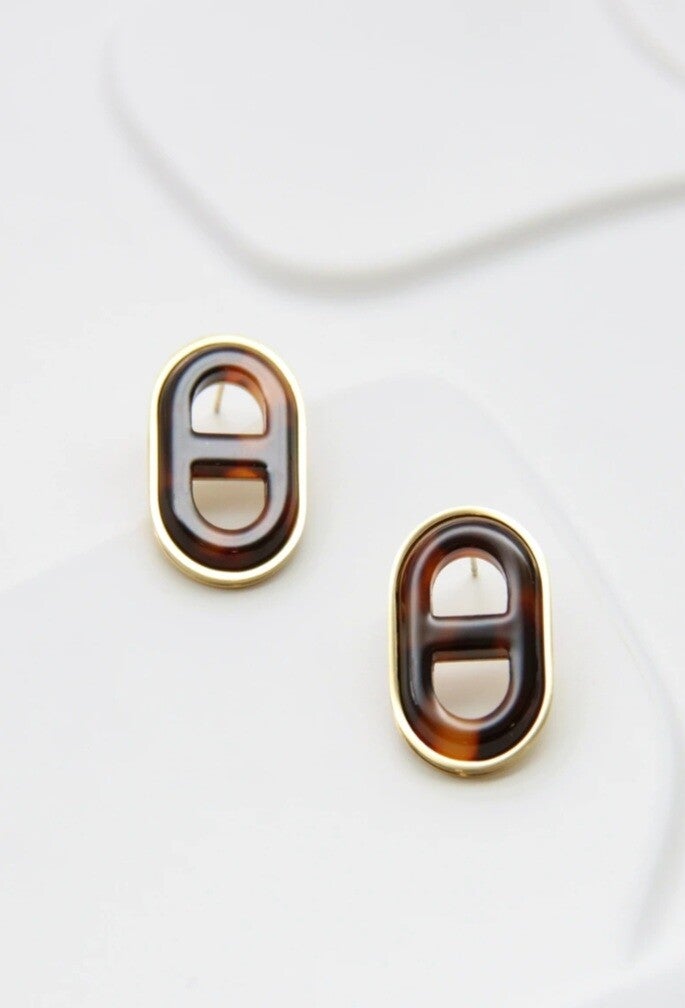 Boucles d’Oreilles Puces Ovales Résine Écaille Dorée