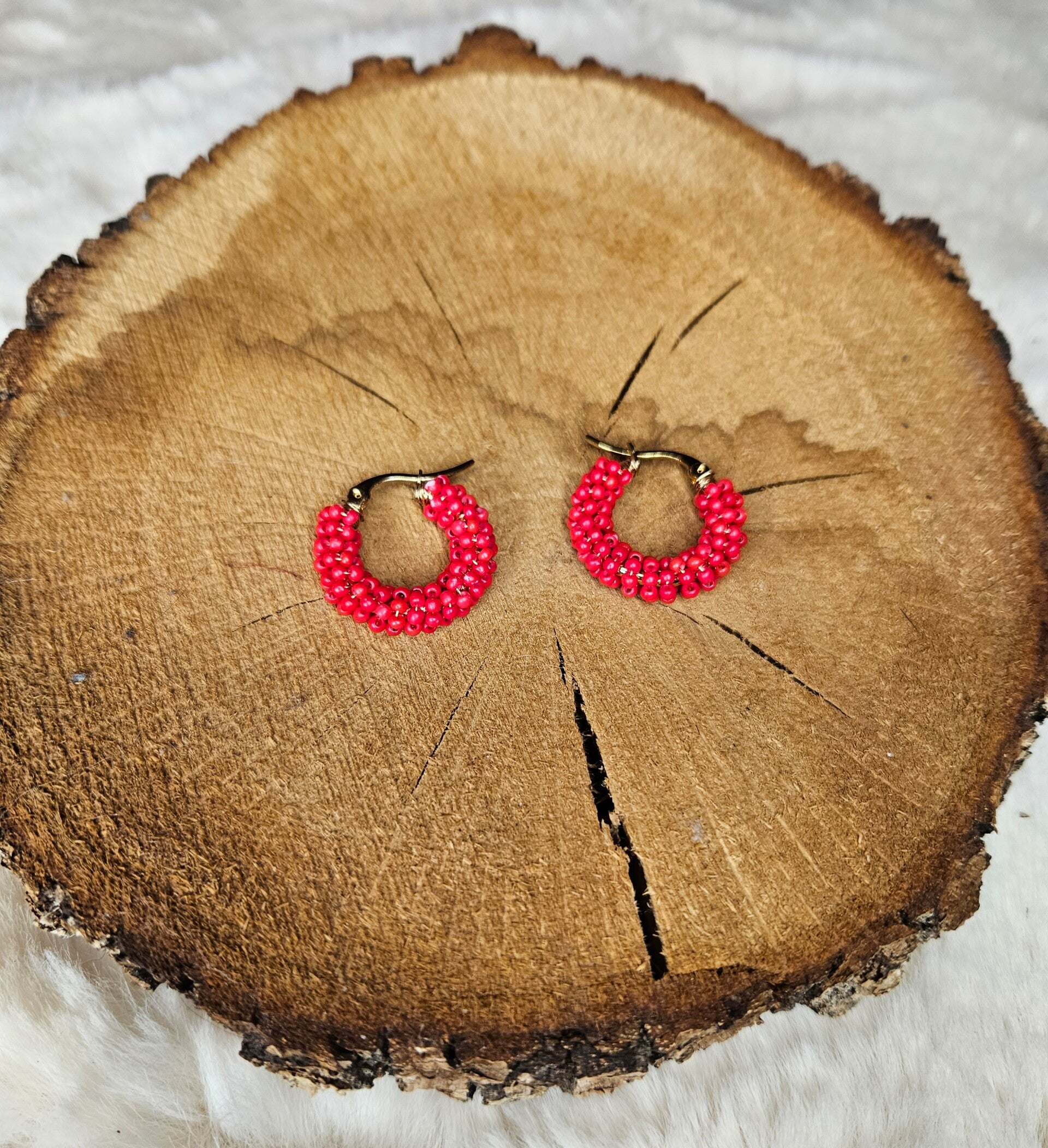 ✨️ Élégantes et raffinées, ces créoles petites à moyennes sont entièrement ornées de perles, disponibles en rouge ou noir. Un bijou chic et intemporel pour toutes les occasions.✨️