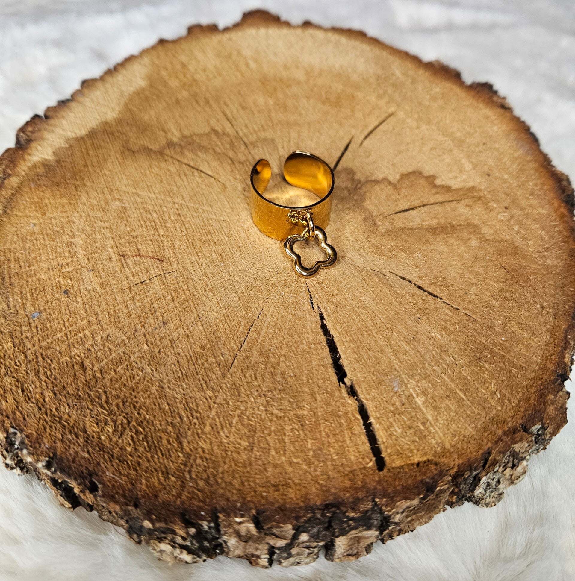 🍀 Bague Doré breloque Trèfle Ouvert