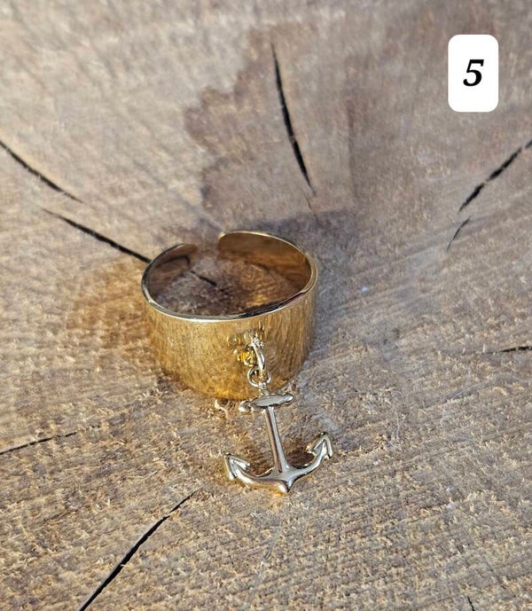 ✨️ Découvrez cette collection de bagues dorées en acier inoxydable, déclinées en modèles fins ou légèrement larges et toutes ajustables. Chaque bague est ornée d’une petite breloque unique : médaille, encre, cœur, trèfle, symbole infini…✨️