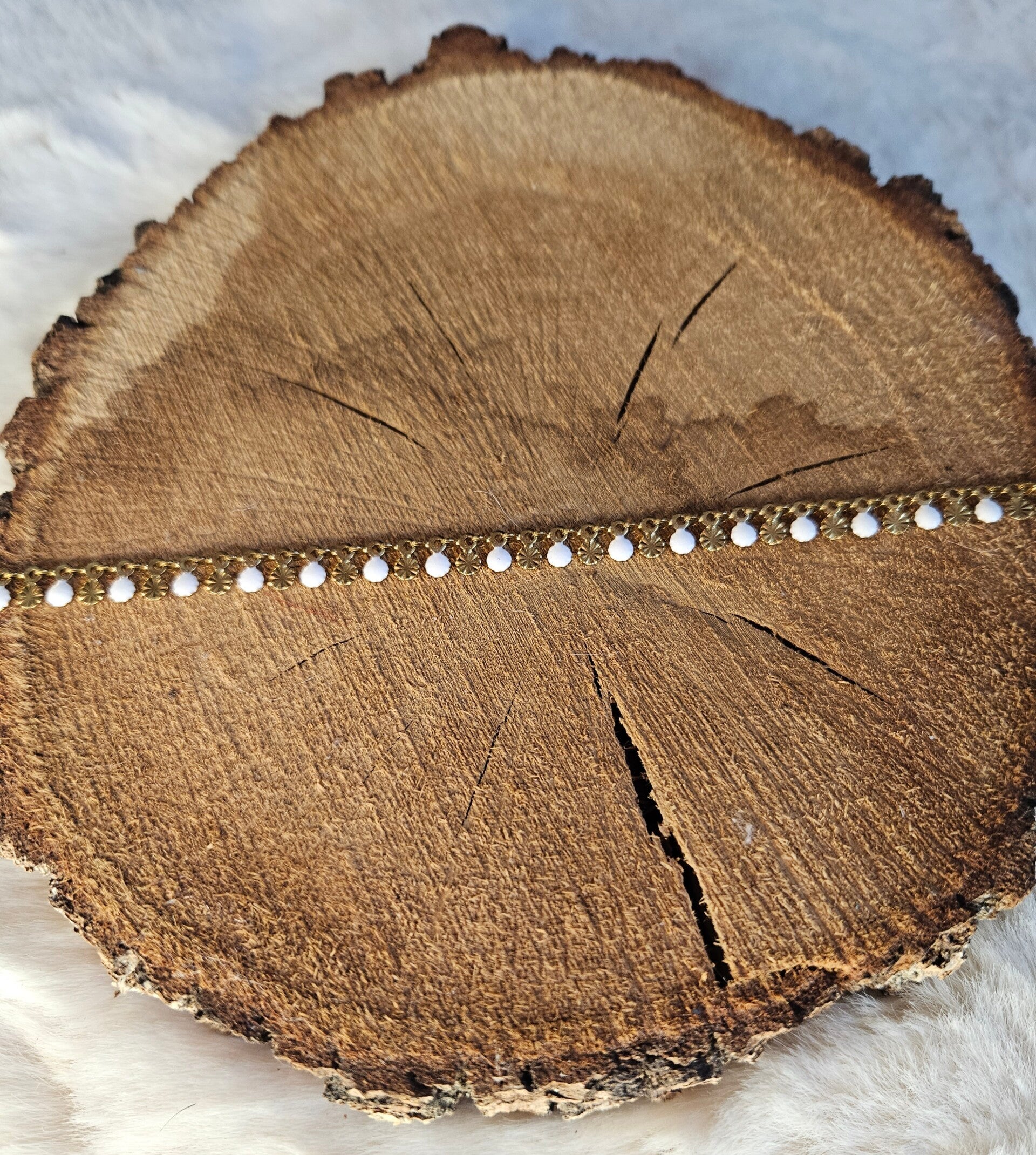 ✨️ Un superbe bracelet doré, orné de nombreuses petites pampilles blanches qui dansent à chaque mouvement.