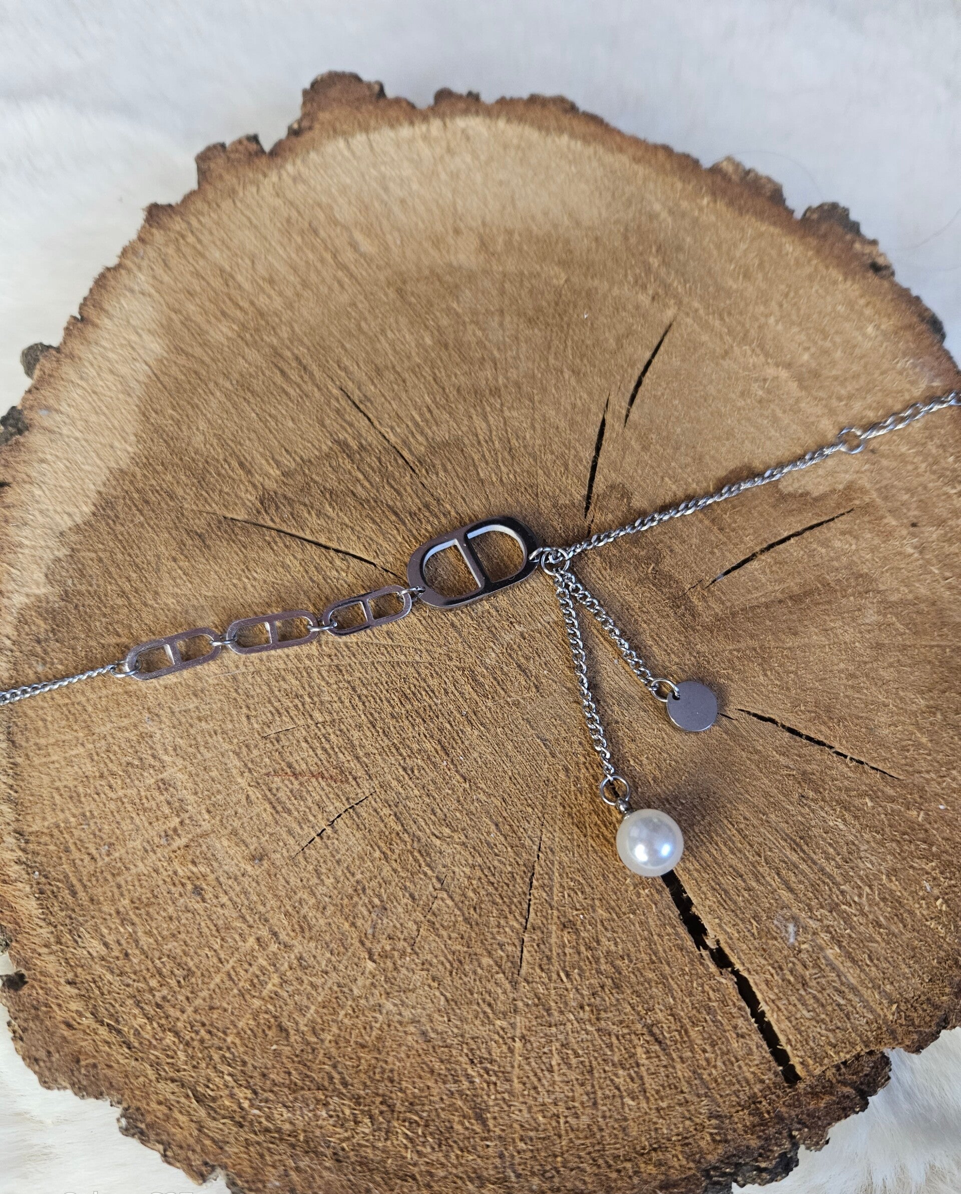 • Une perle blanche nacrée au bout d’une des chaînettes pour une finition subtile et sophistiquée
