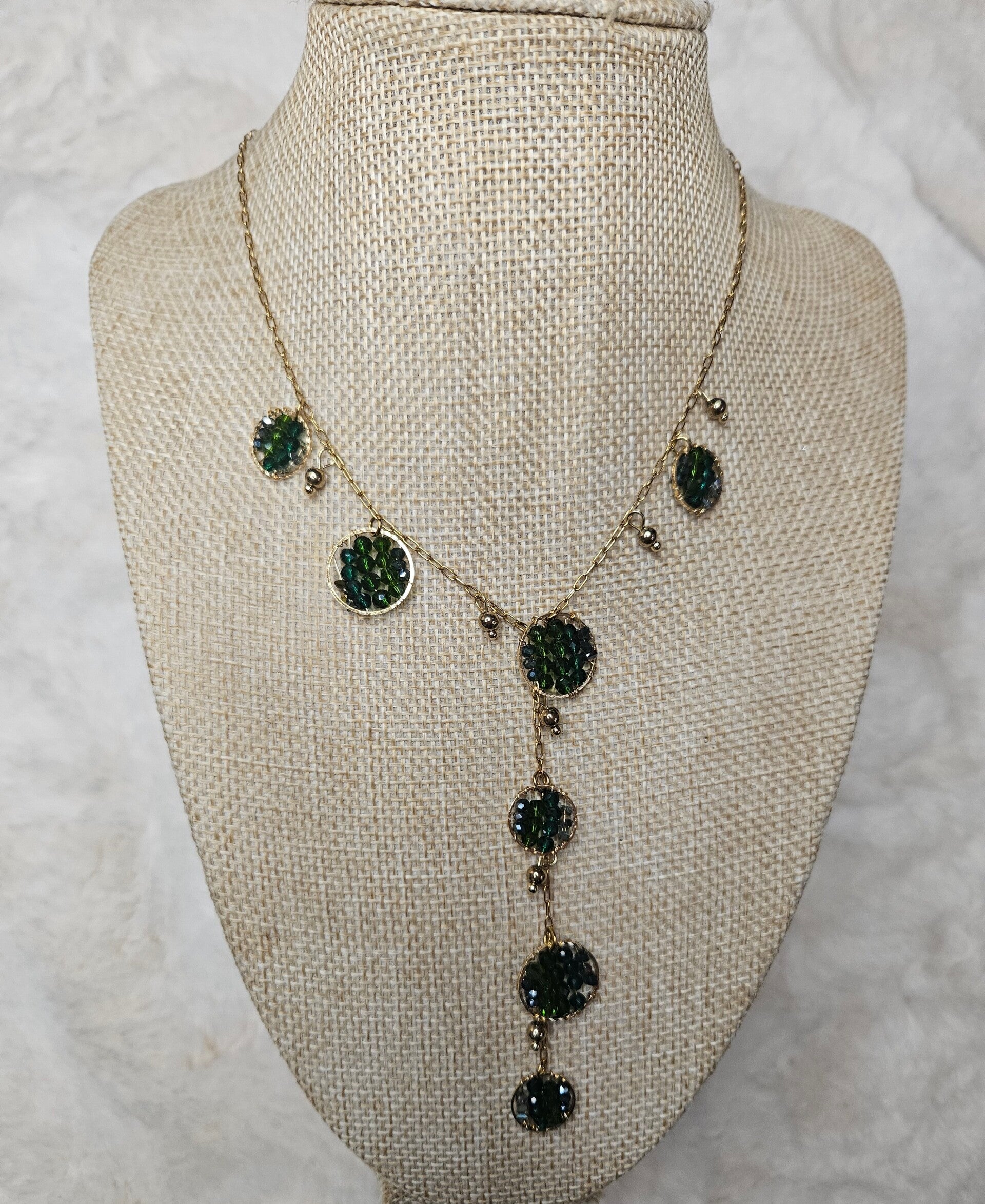 ✨️ Le collier " Layanna " est un délicat collier chêne en Y, orné d’une pluie de petits pendentifs ronds et de perles vert bouteille qui captent subtilement la lumière. Tout au long de sa chaîne en acier inoxydable, de fines pampilles ajoutent mouvement et éclat. Raffiné, moderne et ajustable, il accompagne chaque tenue d’une touche de poésie et d’élégance intemporelle.✨️