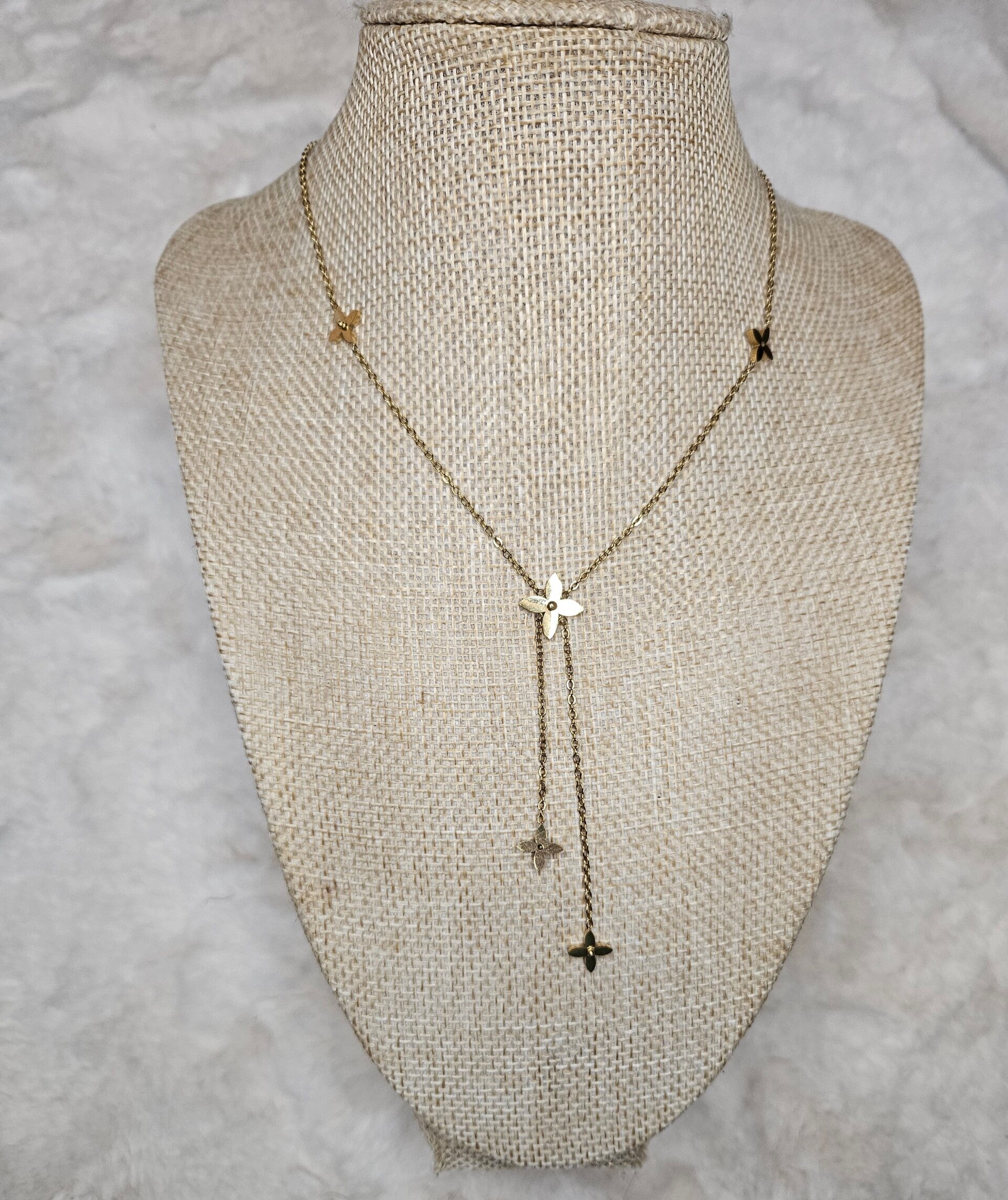 ✨️ Un collier raffiné en acier inoxydable, ajustable, avec de délicates petites fleurs sur le pendentif et au bout des deux petites chaînettes. Élégance et subtilité réunies pour sublimer chaque tenue.✨️