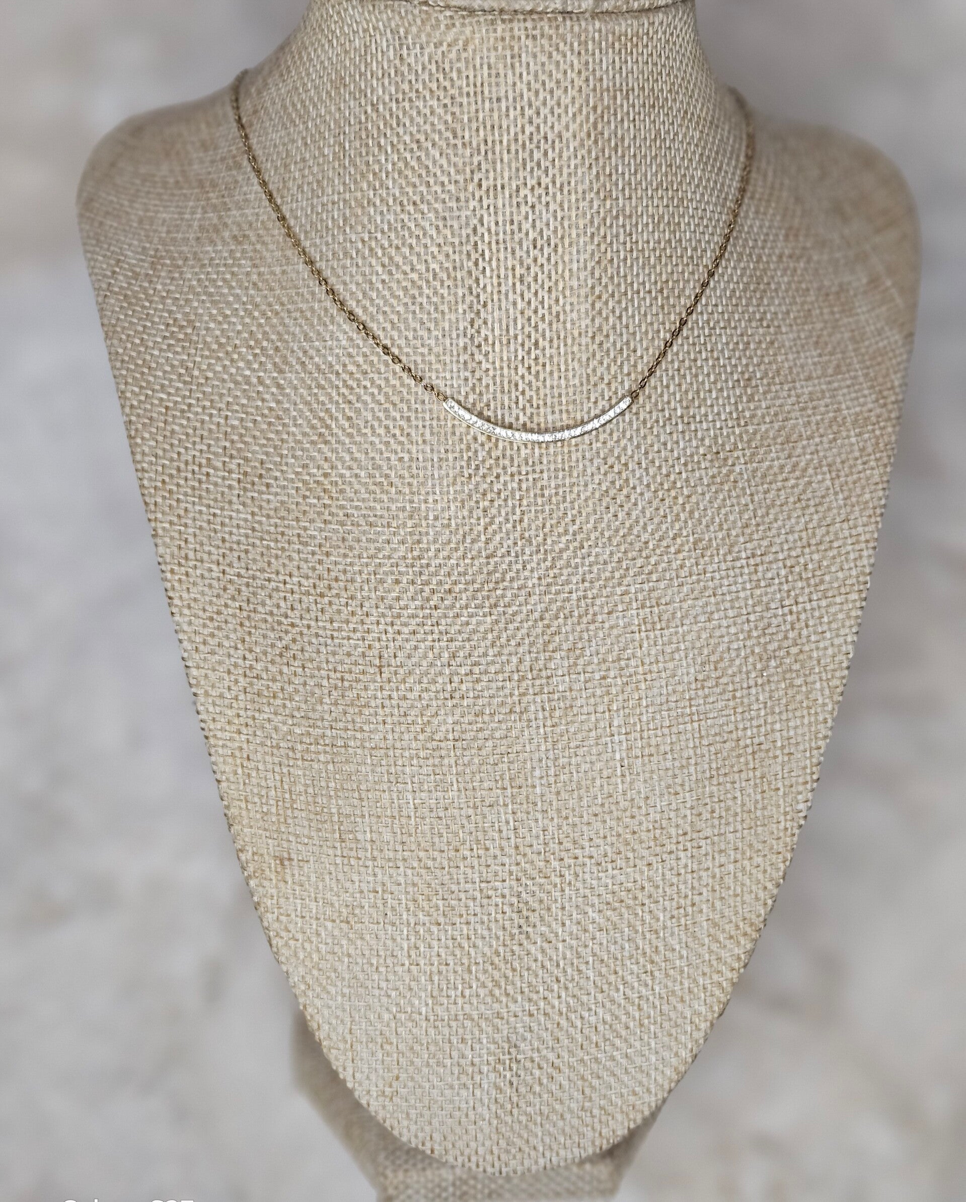 “Lumineux” – fin et délicat, avec un petit arc de cercle en strass scintillants.