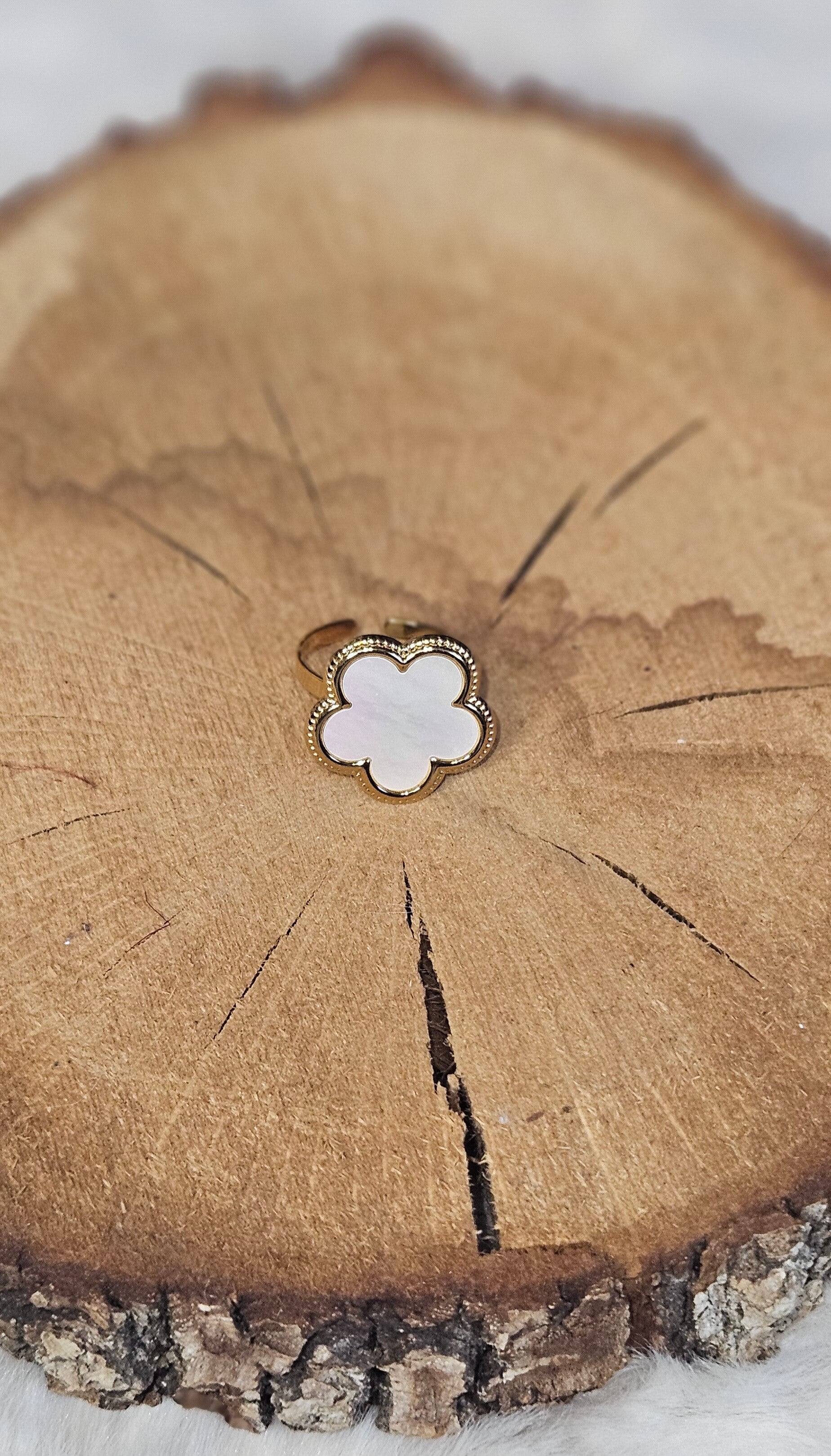✨ Bague Dorée Trèfle Blanc – Collection Elegance ✨