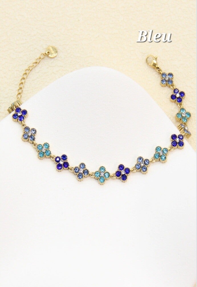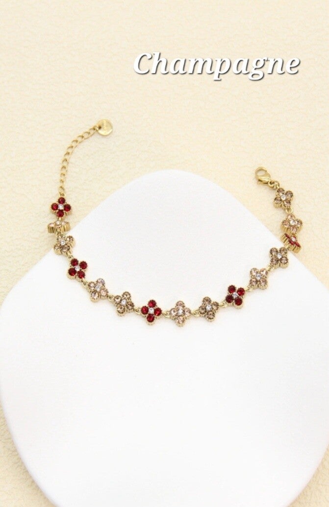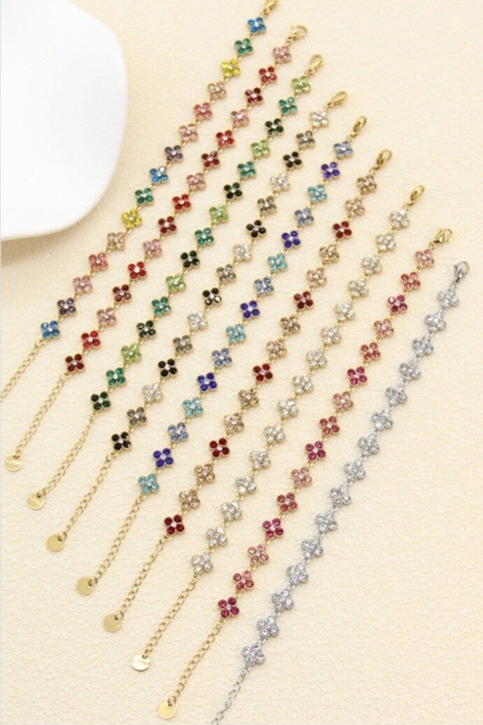 Bracelet trèfles pavés de zircons – éclat joaillier en acier inoxydable