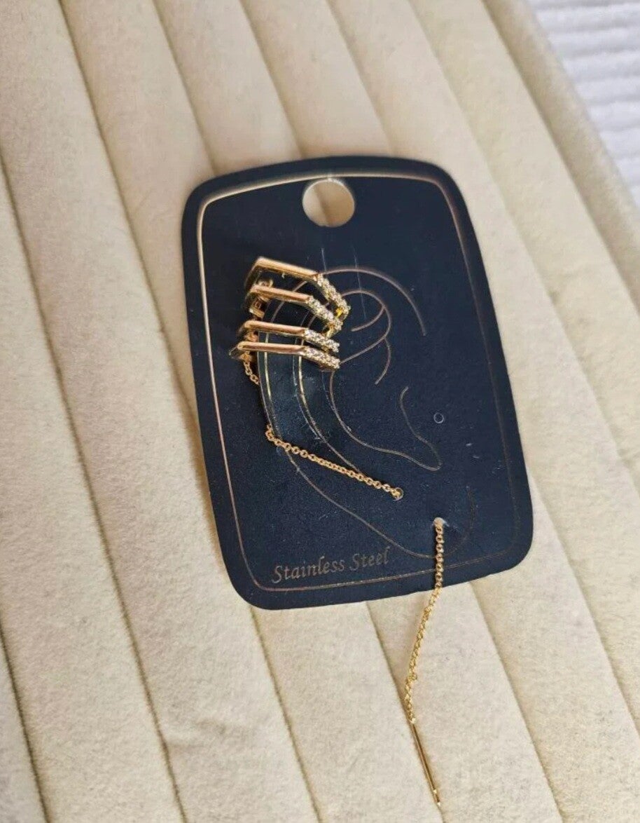 ✨️ Élégantes et originales, ces ear cuffs se fixent en haut de l’oreille et se relient par une fine chaîne à un seul perçage. En acier inoxydable, elles apportent une touche chic et moderne à votre look.✨️