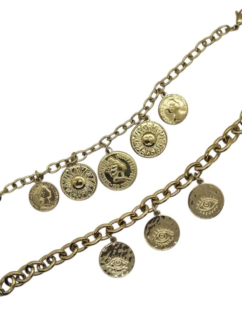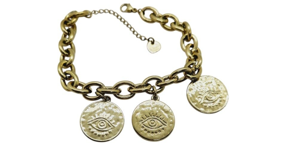 Bracelet gros maillon doré – Breloques pièces œil protecteur