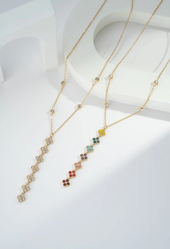 Collier Acier Inoxydable Orné de Cristaux Multicolore dorée