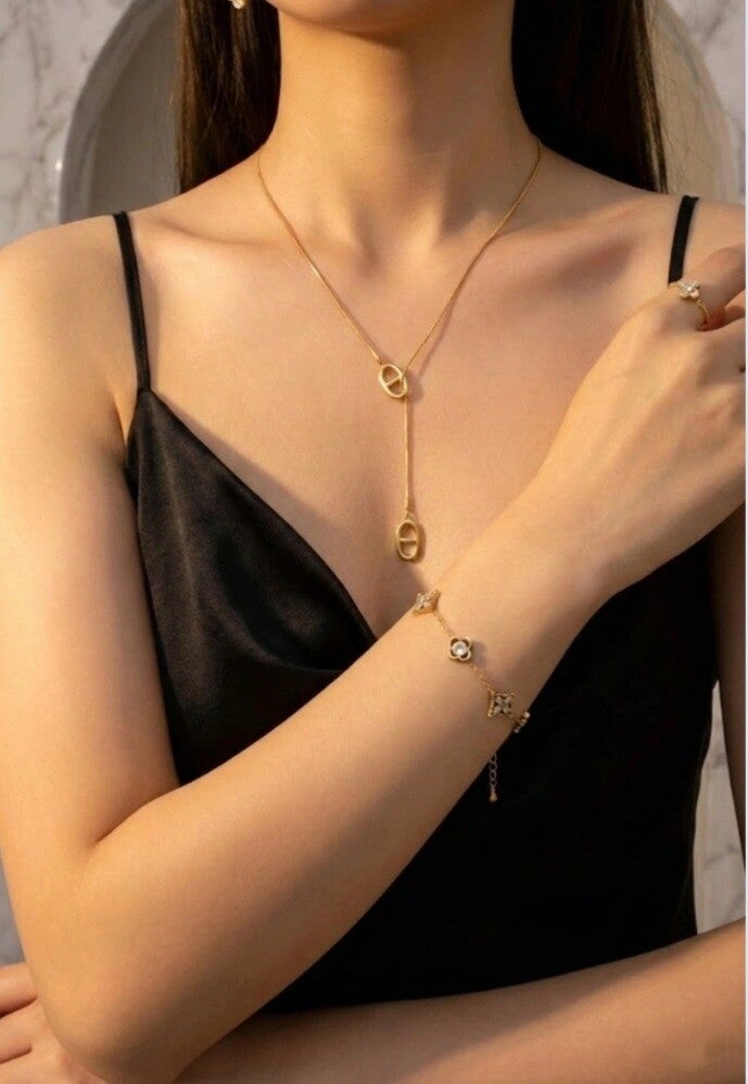 Raffiné et lumineux, ce bracelet en acier inoxydable doré se distingue par son délicat jeu de motifs floraux ornés de cristaux scintillants. Les formes alternées apportent rythme et élégance, créant un bijou à la fois chic et intemporel.