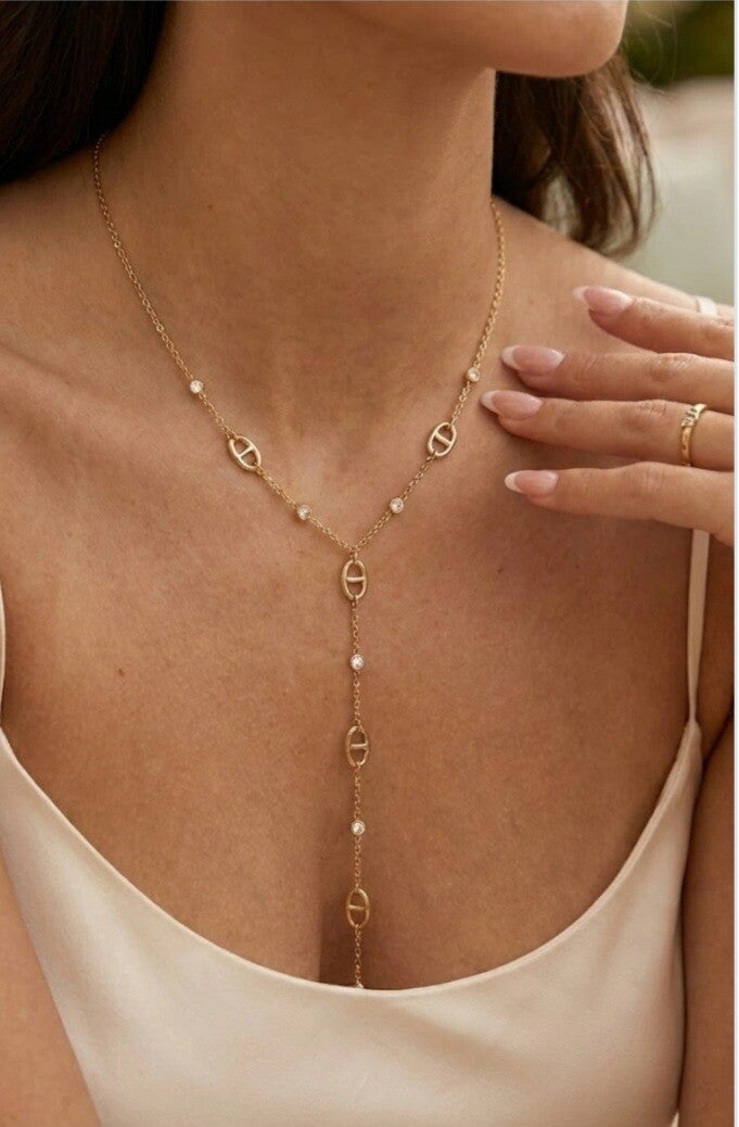 Collier “Y” Élégance Éternelle en Acier Inoxydable avec Strass