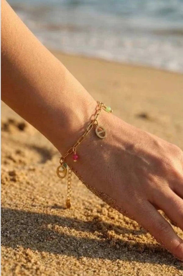 Joli bracelet maille marine orné de petites breloques et de détails en perles colorées, pour une touche chic et ludique 💛