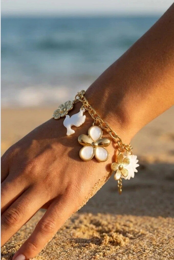 Un bracelet absolument extraordinaire, orné de breloques fleurs et d’une hirondelle, pour un style unique et plein de charme 💛