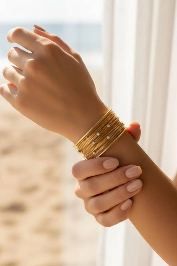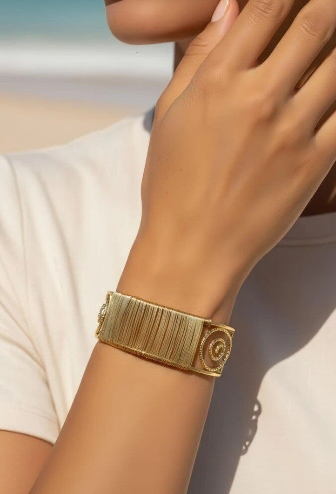 Apportez une touche de lumière à votre poignet avec notre nouvelle collection de bracelets joncs ouverts dorés en acier inoxydable. Chaque bracelet est unique, avec des modèles variés qui se portent seuls ou en superposition pour un look tendance et raffiné.