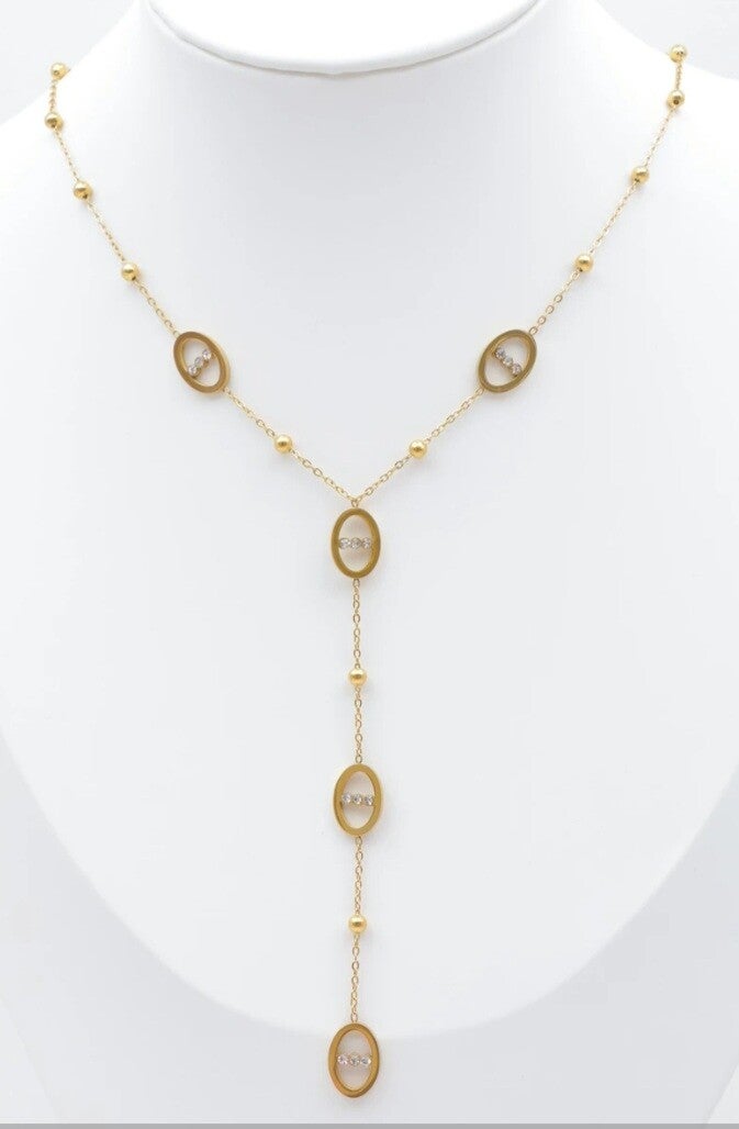 Découvrez notre nouveau collier en Y, élégant et raffiné, conçu en acier inoxydable. Orné de petites boules et de détails de maille marine, il apporte une touche chic et moderne à toutes vos tenues. Ajustable, il s’adapte parfaitement à votre décolleté et est disponible en doré ou argenté pour correspondre à tous les styles.