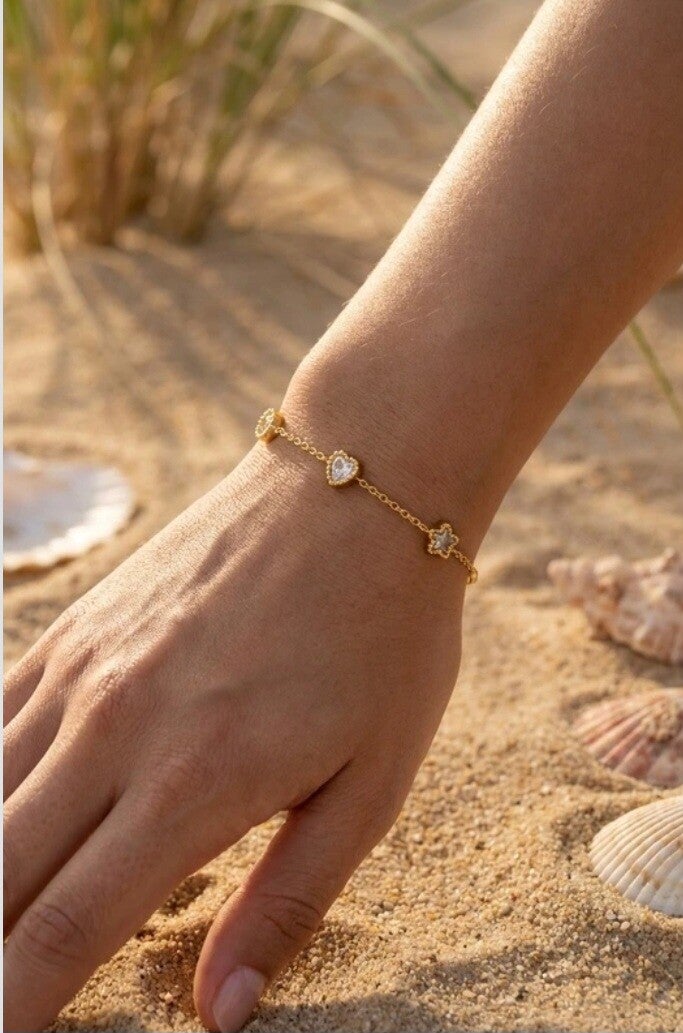 Succombez à ce magnifique bracelet argenté, délicatement orné de zircons en forme de cœur et de trèfle pour un rendu élégant et raffiné. Son design lumineux apporte une touche sophistiquée et féminine à toutes vos tenues.