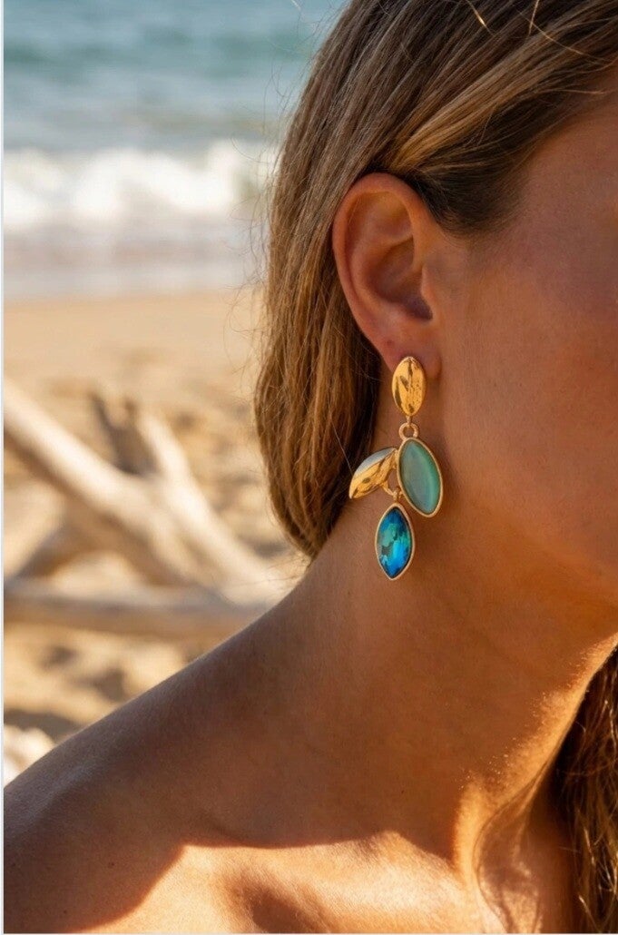 ✨ Nouvelle arrivée – Boucles d’oreilles dorées avec gouttes en zircon coloré ✨