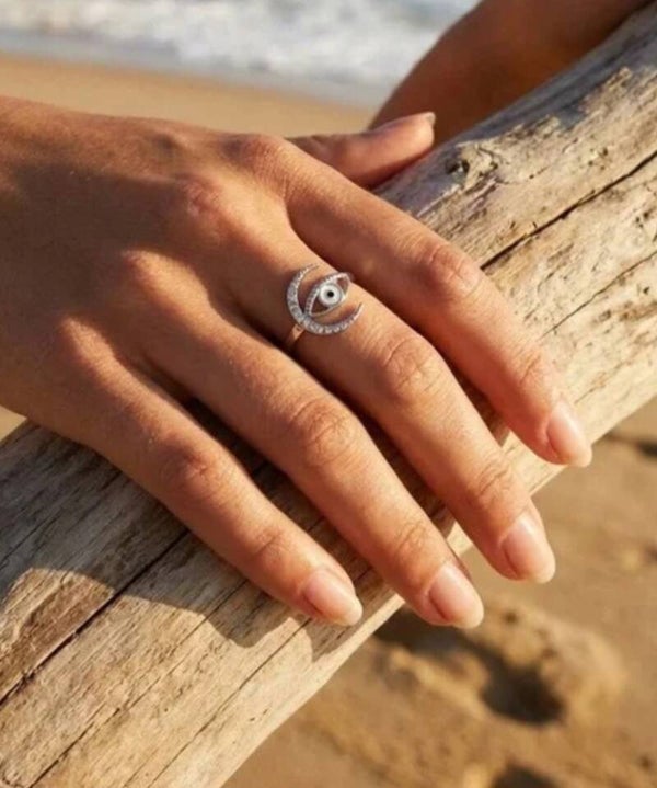 Craquez pour cette magnifique bague en acier inoxydable, avec un design unique œil et lune.