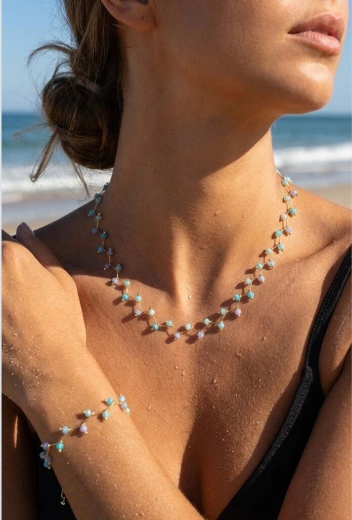 Craquez pour ce magnifique duo collier + bracelet perlés, délicatement composé de plein de petites perles aux couleurs variées 💛💙💚💜