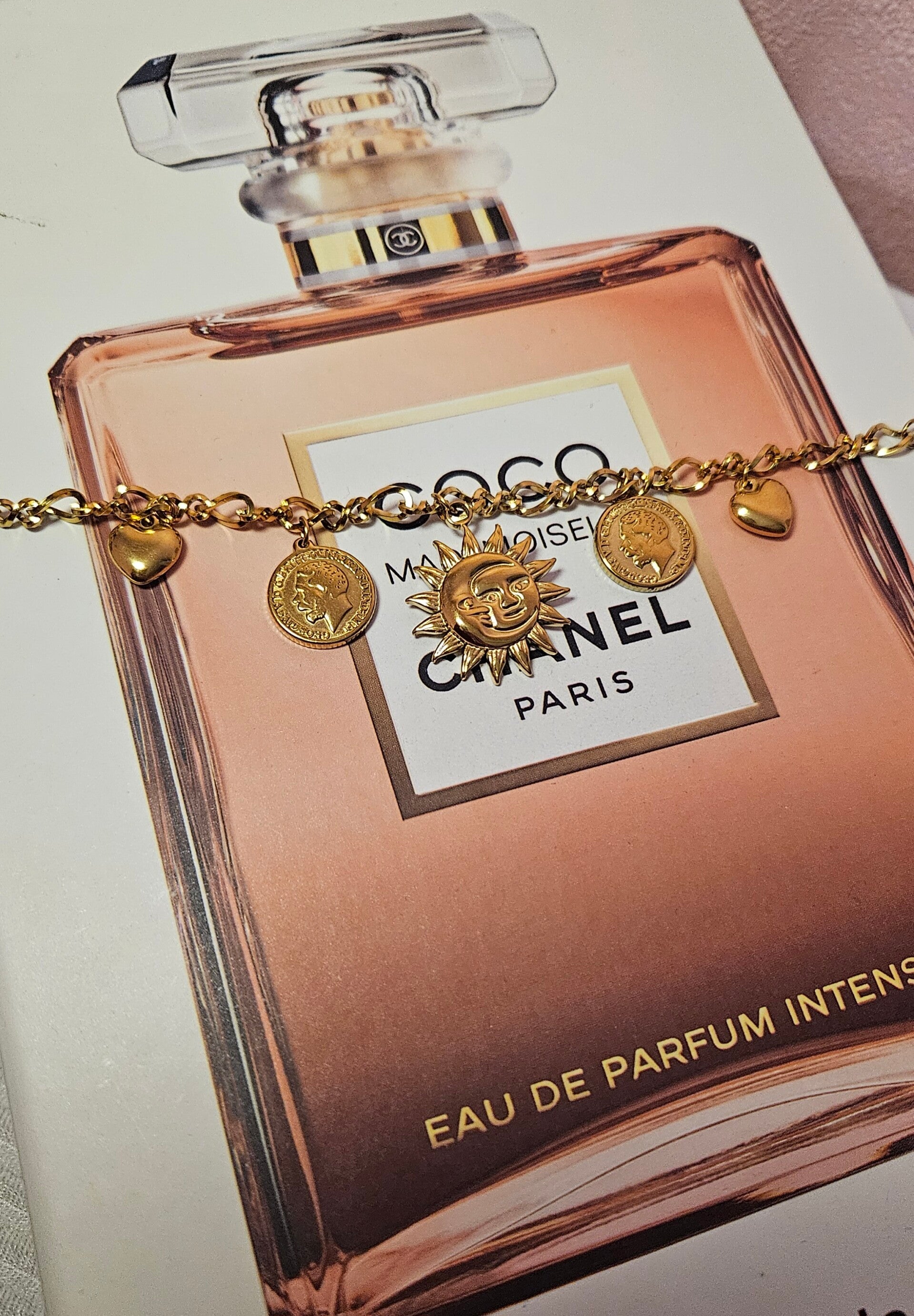 Il est composé d’une délicate chaîne dorée et de multiples breloques pleines de charme :