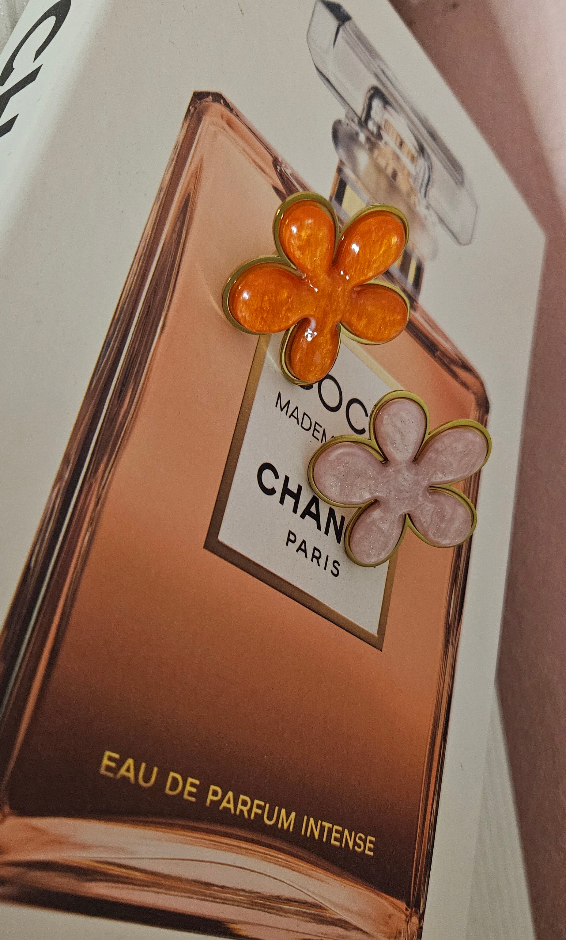 🌸 Bagues Fleurs Scintillantes – Rose nacré ou Orange pailleté (ajustables) ✨