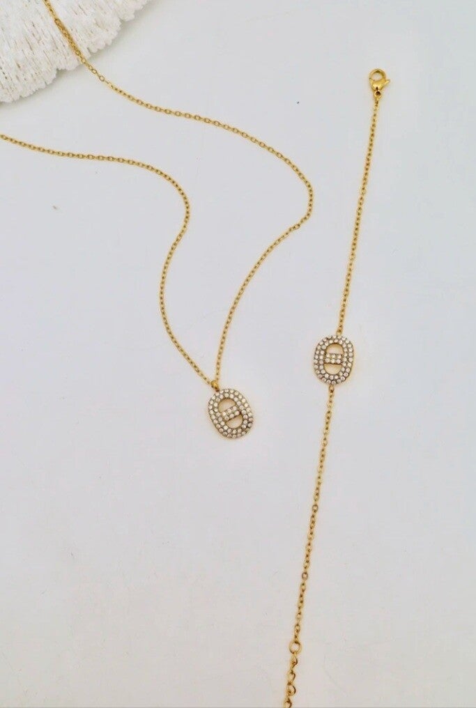 ✨️ Duo collier / Bracelet maille marine strass ✨️