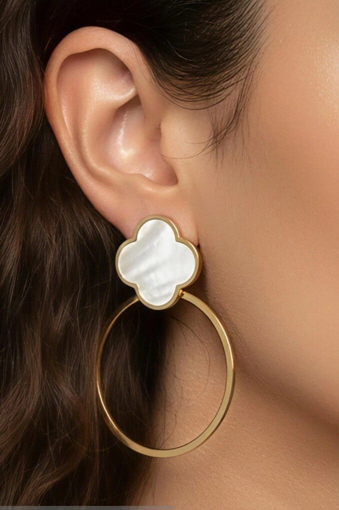 ✨ Boucles d’oreilles XL trèfle nacré – Élégance audacieuse ✨
