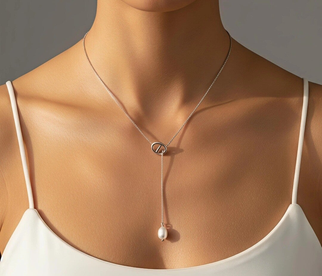Découvrez ce superbe collier en Y, disponible en doré ou argenté, au design raffiné et moderne. Sa chaîne délicate intègre une maille marine coulissante pour un ajustement parfait, et se termine par une jolie perle blanche nacrée qui apporte une touche d’élégance subtile.