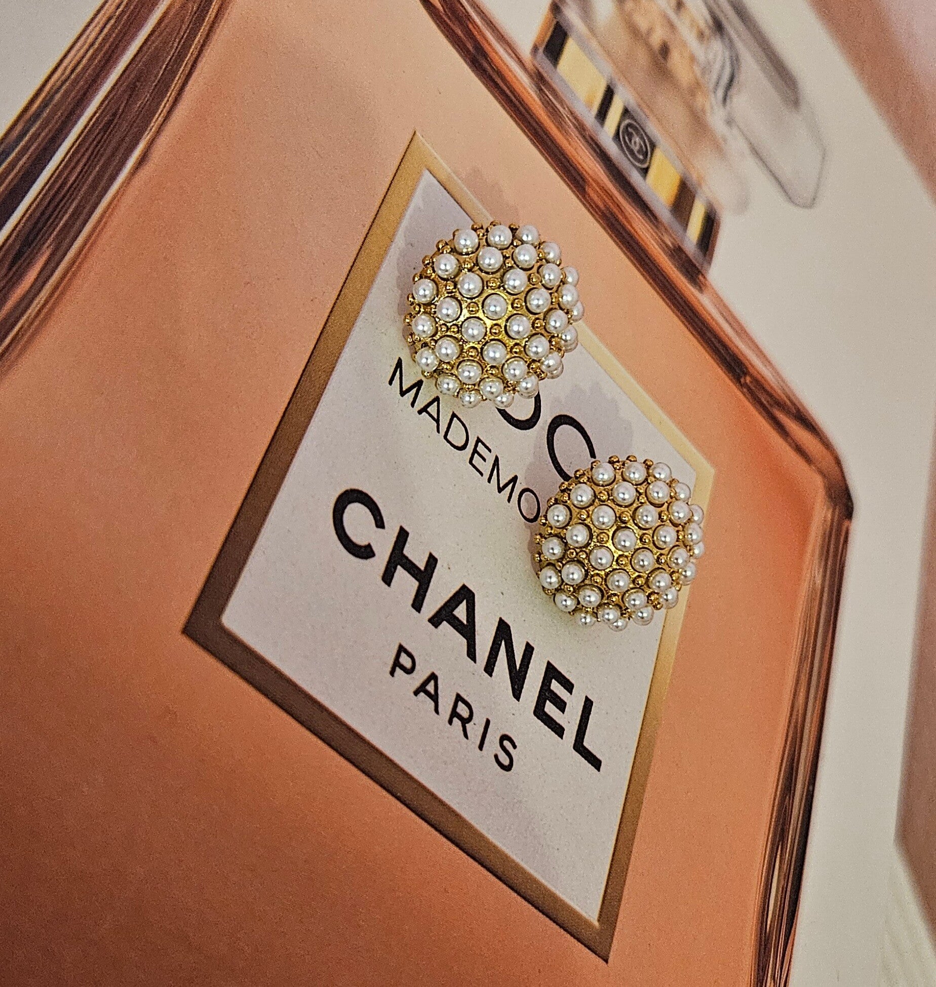 💛 Magnifique paire de boucles d’oreilles boules dorées, parsemées de belles perles blanches nacrées pour un effet raffiné et lumineux