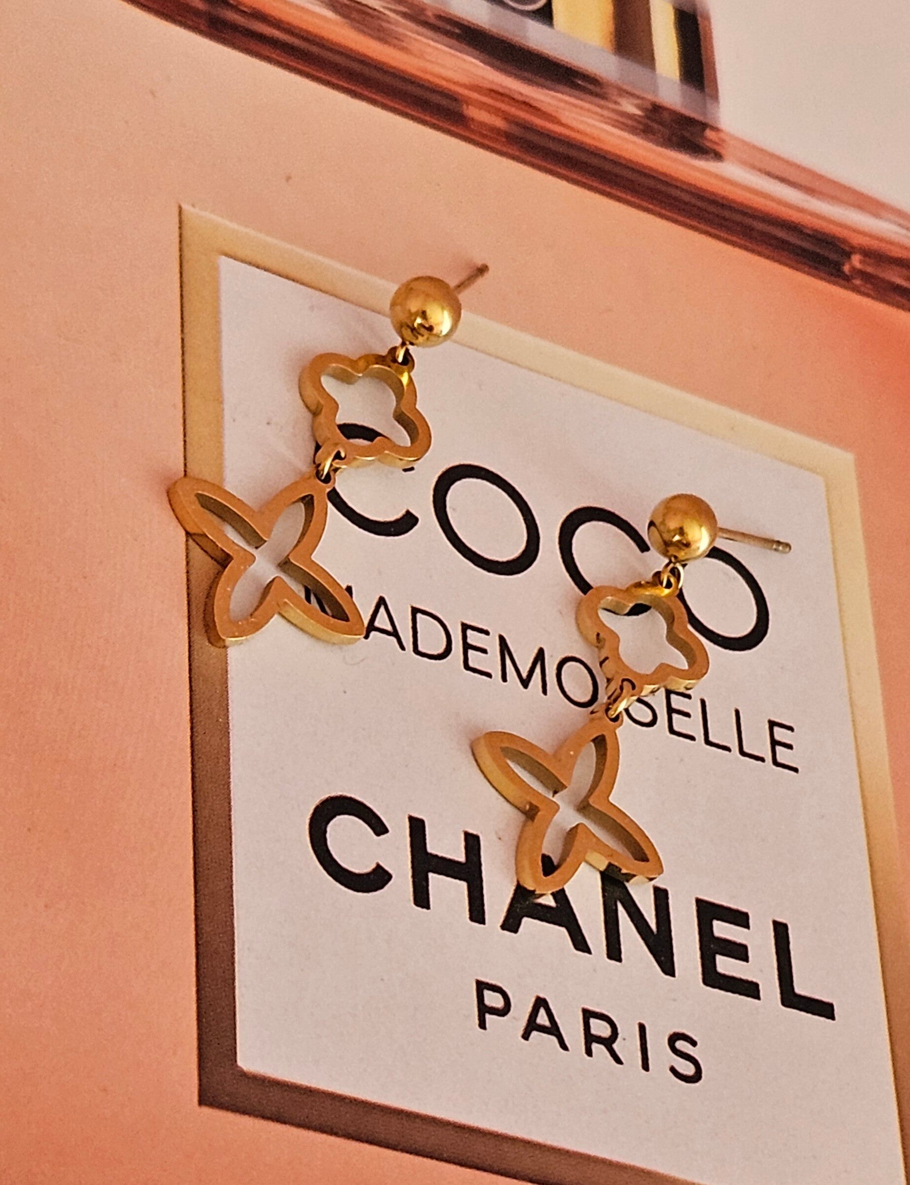 Boucle pendante trèfle doré