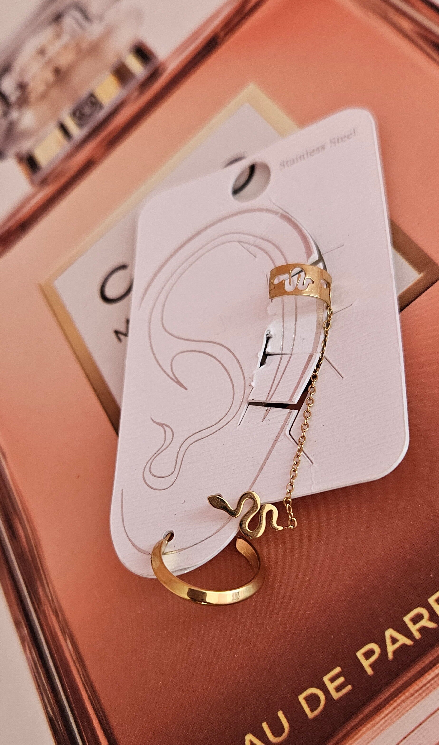 🔗 Chaînette délicate avec un air cuff serpent à poser sur l’oreille